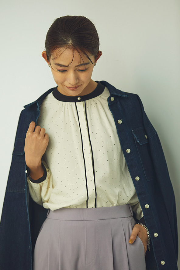 「シルエットがすごくきれいで一目惚れしました。仕事にもプライベートでも着られるので着回しも抜群です!」