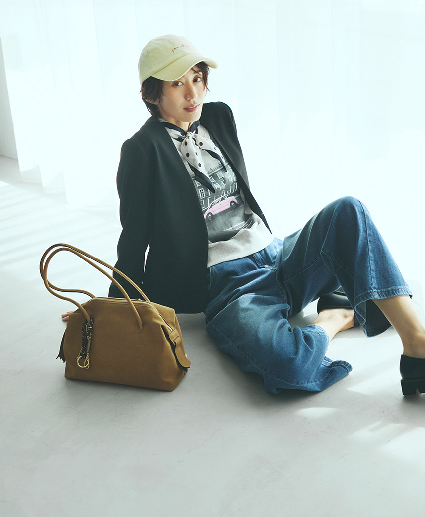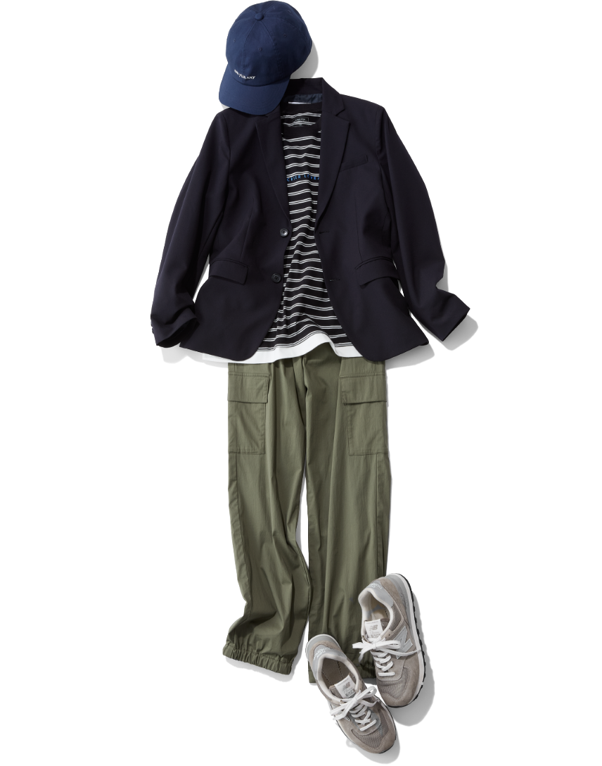カジュアルだけど、大人のきちんと感は欲しい。そんな日はジャケットMIXが有効。ローファーとスカーフで、ジャケットのひとり歩きをセーブ。全体がしっくりまとまります。