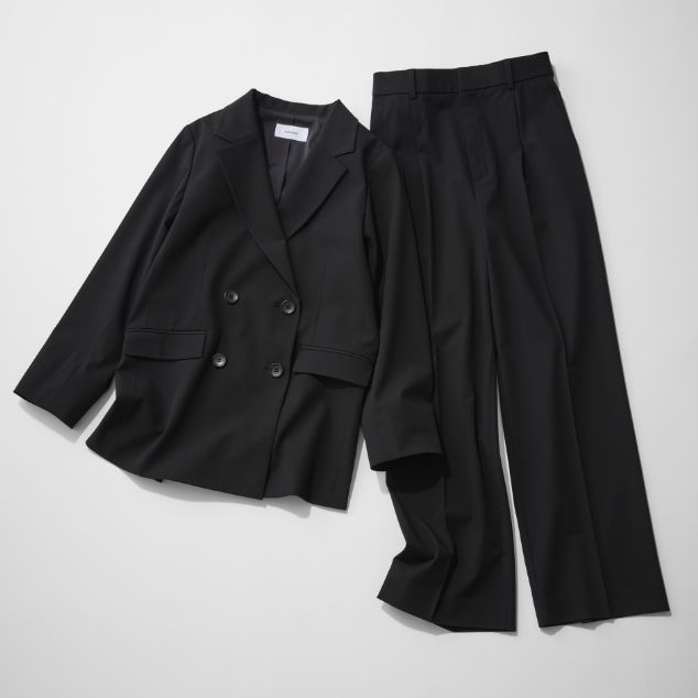 ラクな着心地とキレイ見えに、とことんこだわったスゴラクシリーズから、ジャケット、ブラウス、パンツの3点セット。マシンウォッシャブルなどの機能性を備え、着るだけでスタイルが決まるので、セレモニーはもちろん、お仕事など忙しい日も重宝!