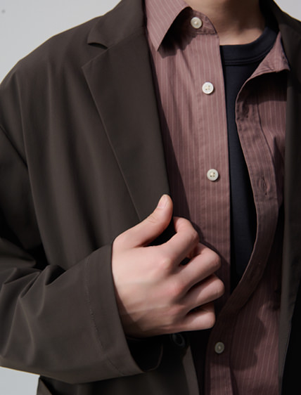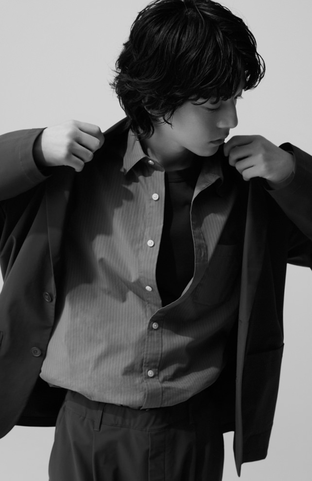 スタイリングに悩まずに簡単にキマる、軽やかなセットアップ。中間色のシャツを中に入れてニュアンシーに仕上げるのが今季の気分。シャツのボタンを多めに開けることで抜け感を出したのも、より春らしくこなすポイントです。