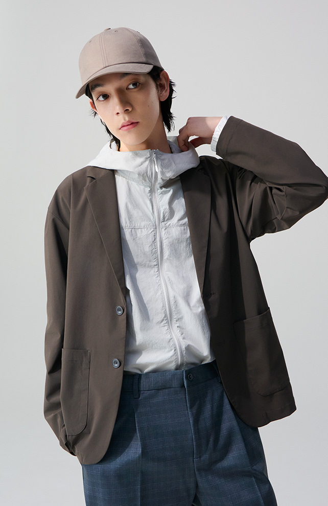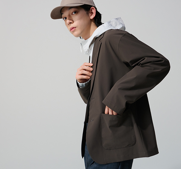 Tシャツやスウェットの羽織りとして活躍するのはもちろん、パーカーと合わせたスポーツ・ミックスが新鮮。さらにキャップを被ることでストリート感をもう一押し。実際に多機能なジャケットだから、アクティブに動き回る日にも最適です。
