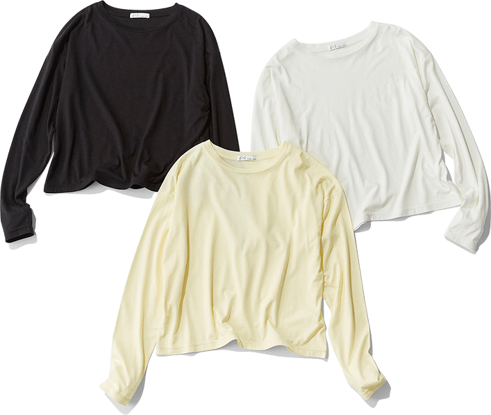 これまで高山直子さんとのコラボレーション展開のみだった〈EiiS〉。お客さまといちばん距離が近く、低身長ならではのお悩みを共有している人気の低身長スタッフとともに、〈GLOBAL WORK〉ならではのアイテムを企画するプロジェクトが始まります。ブランド商品担当者と打ち合わせを重ねるなかで出てきた「Tシャツのロゴは通常サイズだと大きすぎる」「ポケットの位置をもっと高く」など、服のプロでも気づかなかったお悩みやアイデアを盛り込みました。着ることでもっと自分の身長が好きになれるようにという願いを込めたファーストコレクションをご覧あれ!