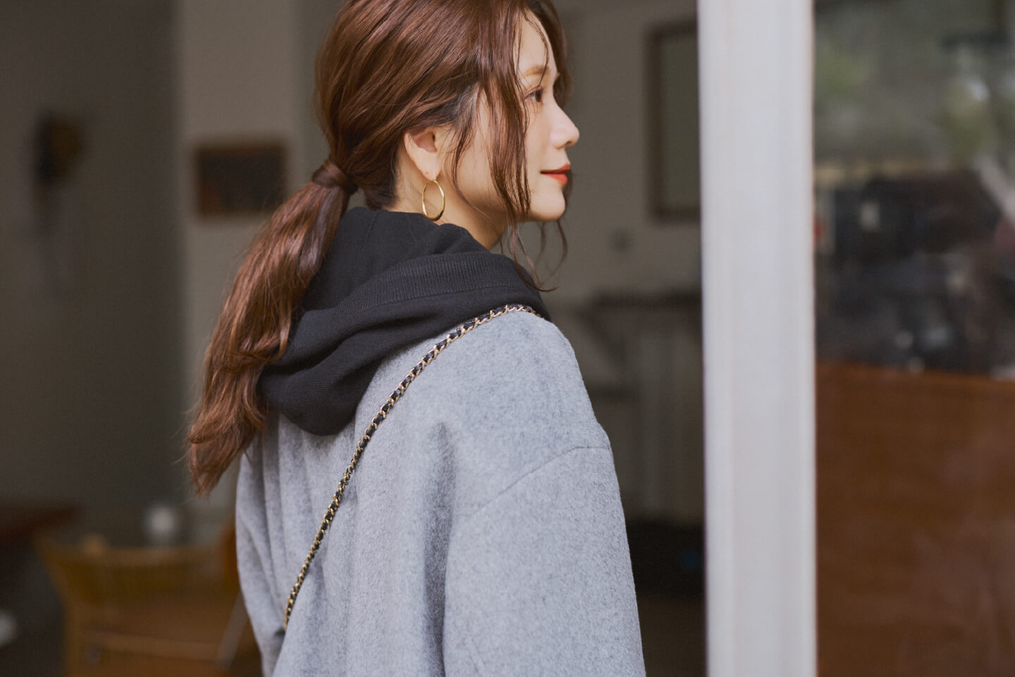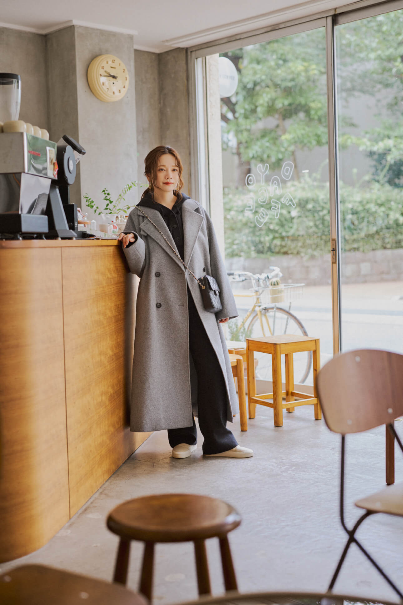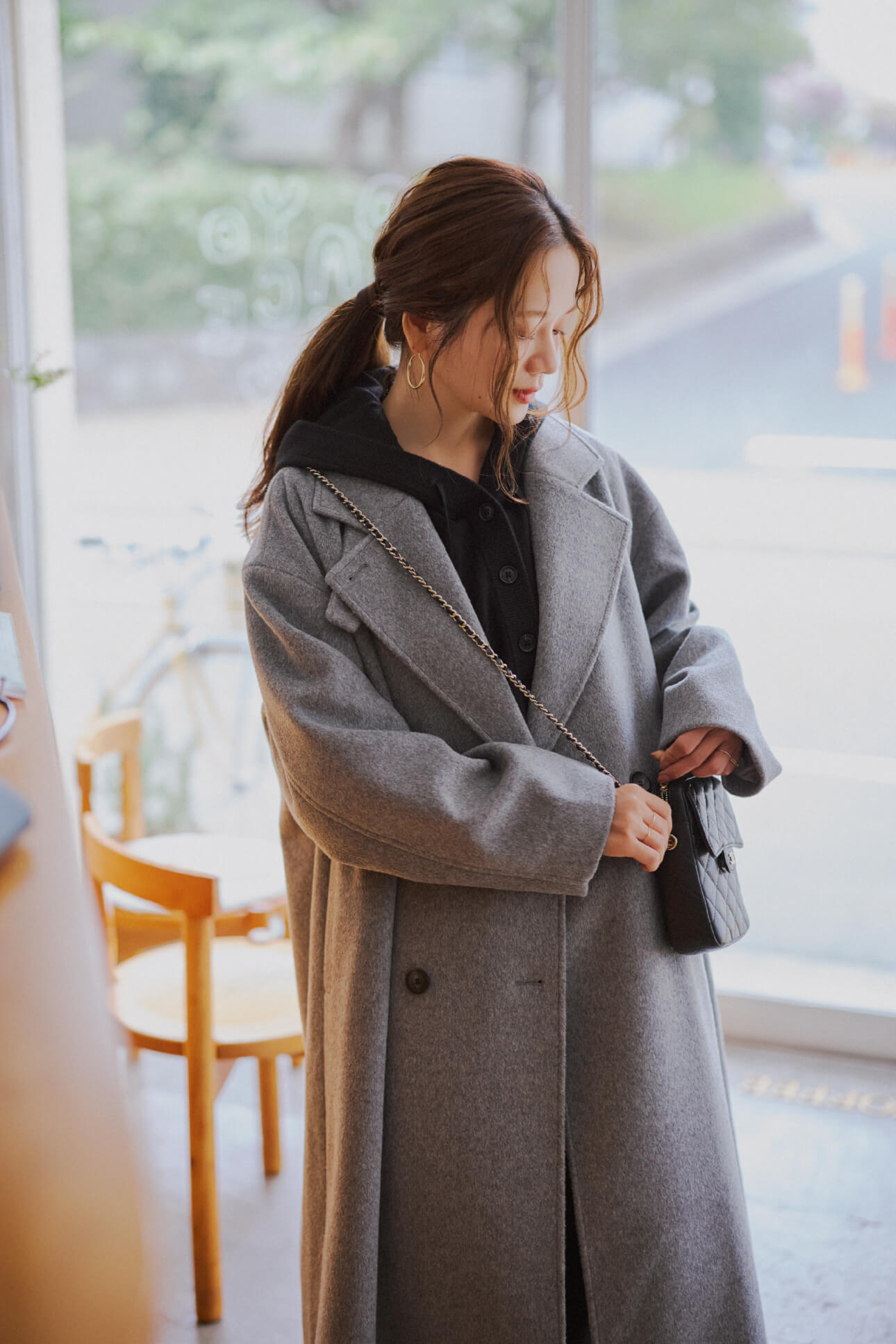 こっくりとあたたかみのある茶系のグラデーションスタイルが旬。やわからく着ごこち抜群のウールライクコートは、重ね着しやすいようにゆったりしつつもスッキリ仕上がるのでヘビロテ間違いなし。