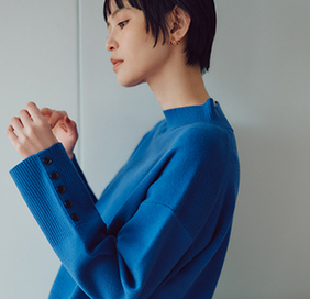 長めのリブ袖にボタンがアクセント。やや広めの袖のホールなどトレンドの詰まったデザインです。