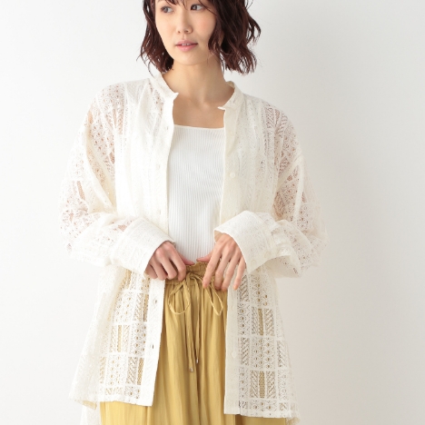 レース素材で通気性バツグン!そもそも汗をかきにくいコーデを組み立てれば、汗ジミを心配せずにオシャレが楽しめます。